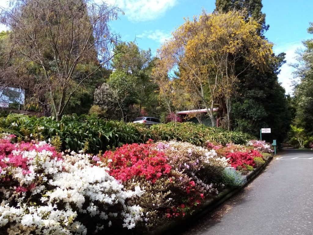 There are many walking tracks throughout the Gardens. Some feature a particular type of plant – or example, rhododendrons, camellias, native NZ plants, and the native NZ giant – the kauri tree. The Floral Walk features a mixture of native and exotic flowering shrubs and trees.