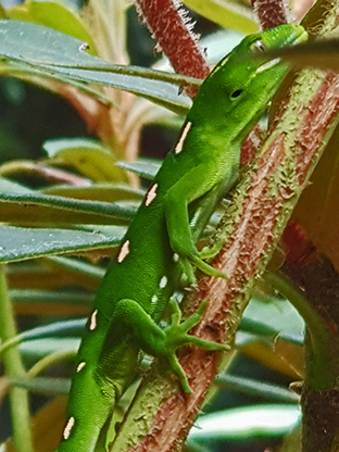 Spotted by sharp-eyed volunteers - Naultinus elegans / moko kakariki / the elegant gecko, also known as the Auckland gecko. This little green beauty is seldom seen as far south as the Gardens.A mighty cedar falls